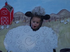 Cameron as a tired sheep I guess. He had a great time at the fair seeing all the animals, eating lots of french fries, and watching the acrobats and divers.