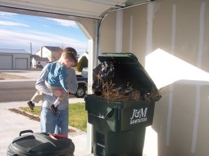 Then we decided it was time to say good-bye to the binky. He was a good sport about it, he threw it in the garbage and we promised to buy him a new toy.