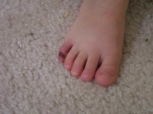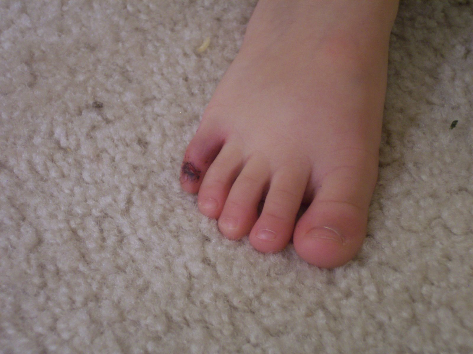 Cameron bounces back pretty quickly. He did like the attention though and loves to tell the story about how his toe got squashed and Mommy cried.
