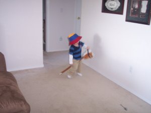 Cameron calls this his “stupid” hat. I’m not sure why and I’m not sure if I’m ready for him to use the word “stupid” but it is a little bit cute. He puts it on while he rides his horse around the house.