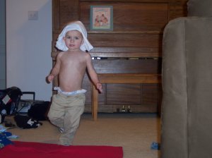 Crazy child February 6, 2008November 16, 2018 / Jo Bird Last night Cameron got his shirt about half-way off, as you can see, and then went crazy running around the house. It’s a little embarrassing how skinny the poor kid is, but it’s not for lack of effort on my part. Or on his part, he likes to eat. Share this: Click to share on X (Opens in new window) X Click to share on Facebook (Opens in new window) Facebook Like Loading... Related