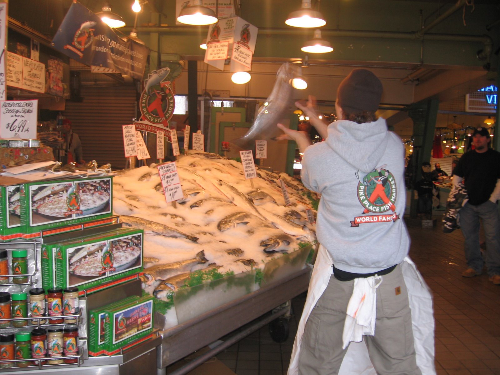 This is at Pike Place Market, the vintage “fish-throwing” image of Seattle.