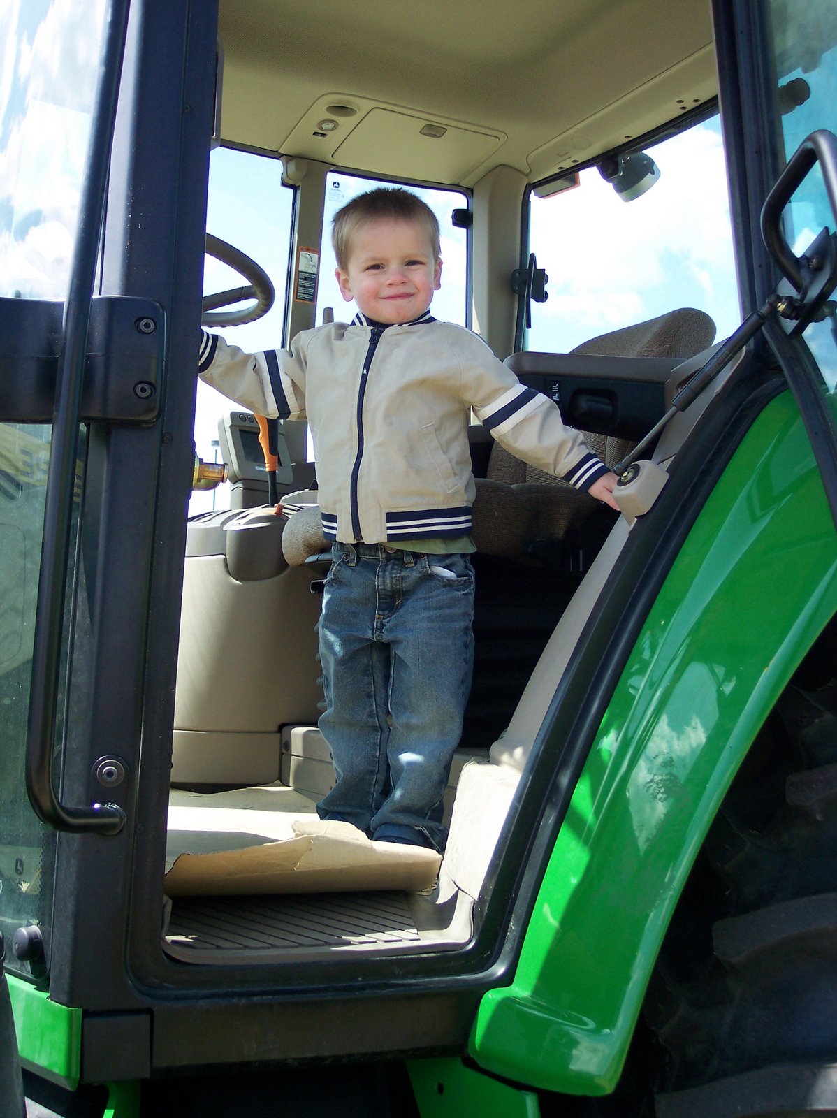 Cameron got to climb up into a big tractor. What a little boys dream! He got a little scared though. When I climbed up with him and put my hands on the steering wheel he said “Don’t drive it Mom.” I got a couple good laughs from the warning stickers on the combine. Who makes these up? What exactly are they trying to say?