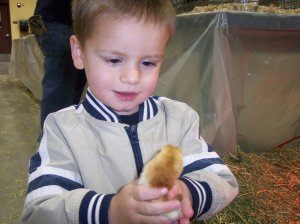 They had baby chicks to hold and Cameron loved that. Eli liked it too after his initial confusion of the soft, chirpy thing Cameron was shoving in his face.