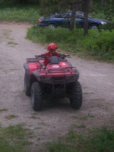 Cameron was cool stuff in his helmet and sunglasses. Periodically he would inform us that he was going for a ride on the 4-wheeler. He would go outside and sit on it and let his imagination do the rest. (You might notice in the picture below that his helmet is on backwards.)