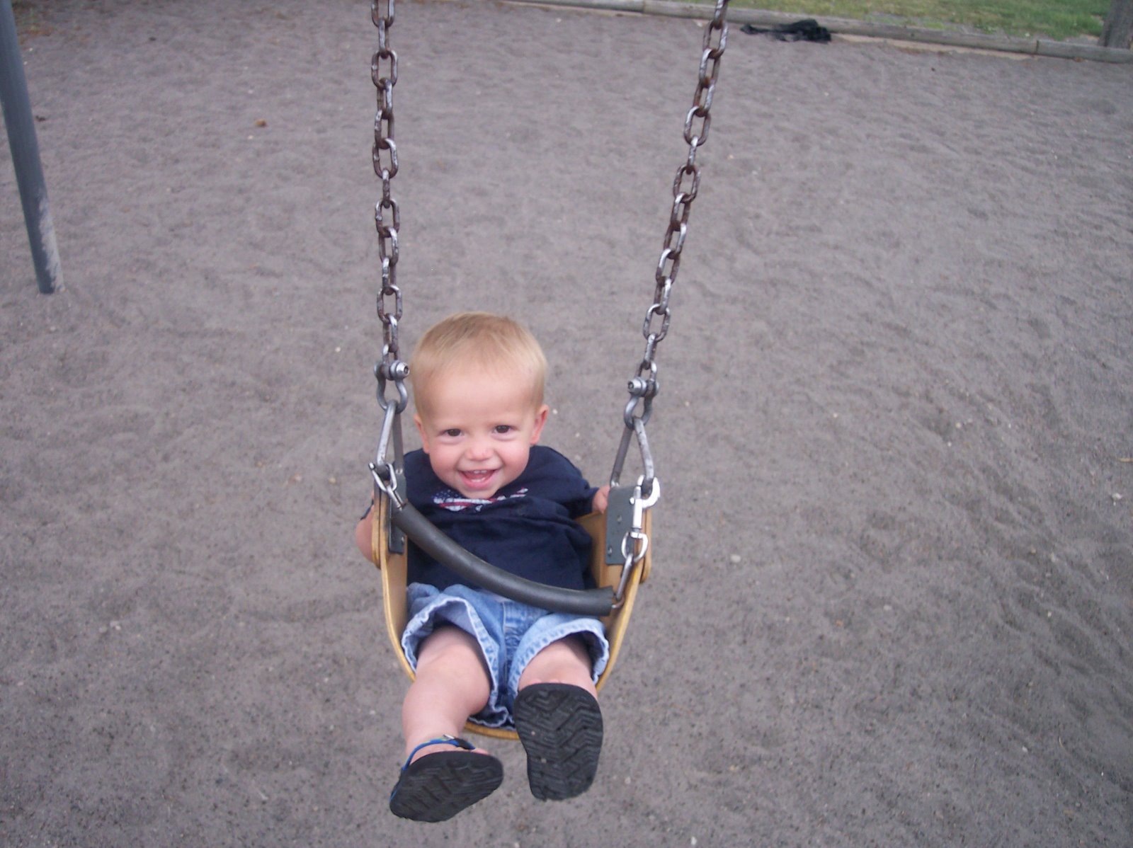 We ate a late lunch in West Yellowstone before the Playmill theater and the boys were thrilled to be at a park. Eli loves to swing!