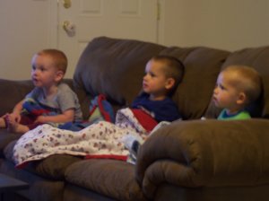 The quality of the picture isn’t that great but these boys were watching a movie together and I’ve never seen them all three sit still for so long! (The one on the left is Carter, we were watching him for the evening.)