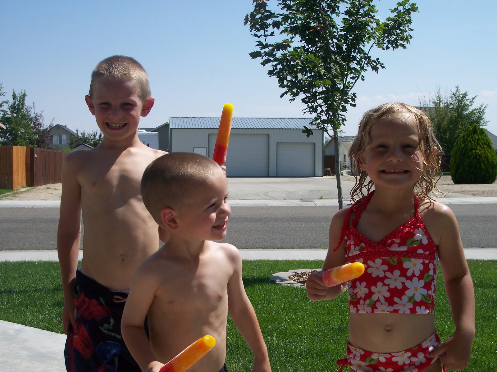 These are the neighbors Tyler and Aubrey. Cameron and Aubrey are great buddies. It’s so fun that he is to an age where he has little friends that come knock on the door to see if he can play. He calls popsicles, pop-ska-boes.