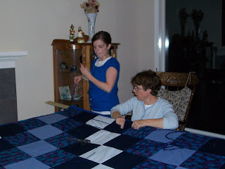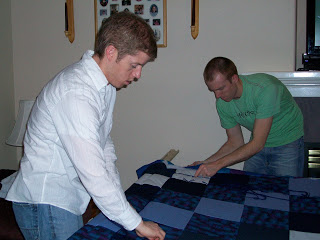 We just found some ways to have a really good time. A holiday wouldn’t be a holiday without a service project instigated by my mother. I’m not sure how she got the fellas to tie a quilt…