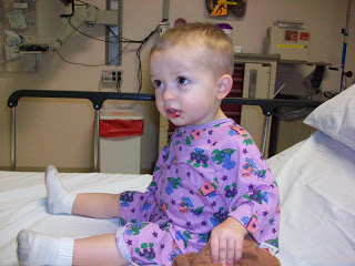 He was in such good spirits waiting in the hospital room and I happened to have my camera in my purse so I felt justified in taking a picture. He was actually quite happy and friendly to the nurses and doctors until they put the little oxygen probe on his toe. That made him pretty angry. My sister Lori works in the ER and she says that is pretty common. Of all the things they did to him last night it strikes me as so strange that that was the thing he hated most.