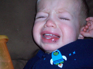 Granted, this time he didn’t do it entirely on his own, but nonetheless, he is a little accident prone. What exactly did he do? He took a tumble off of a chair and bit through his lower lip.