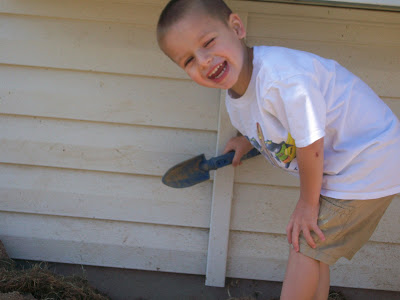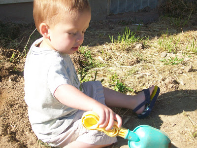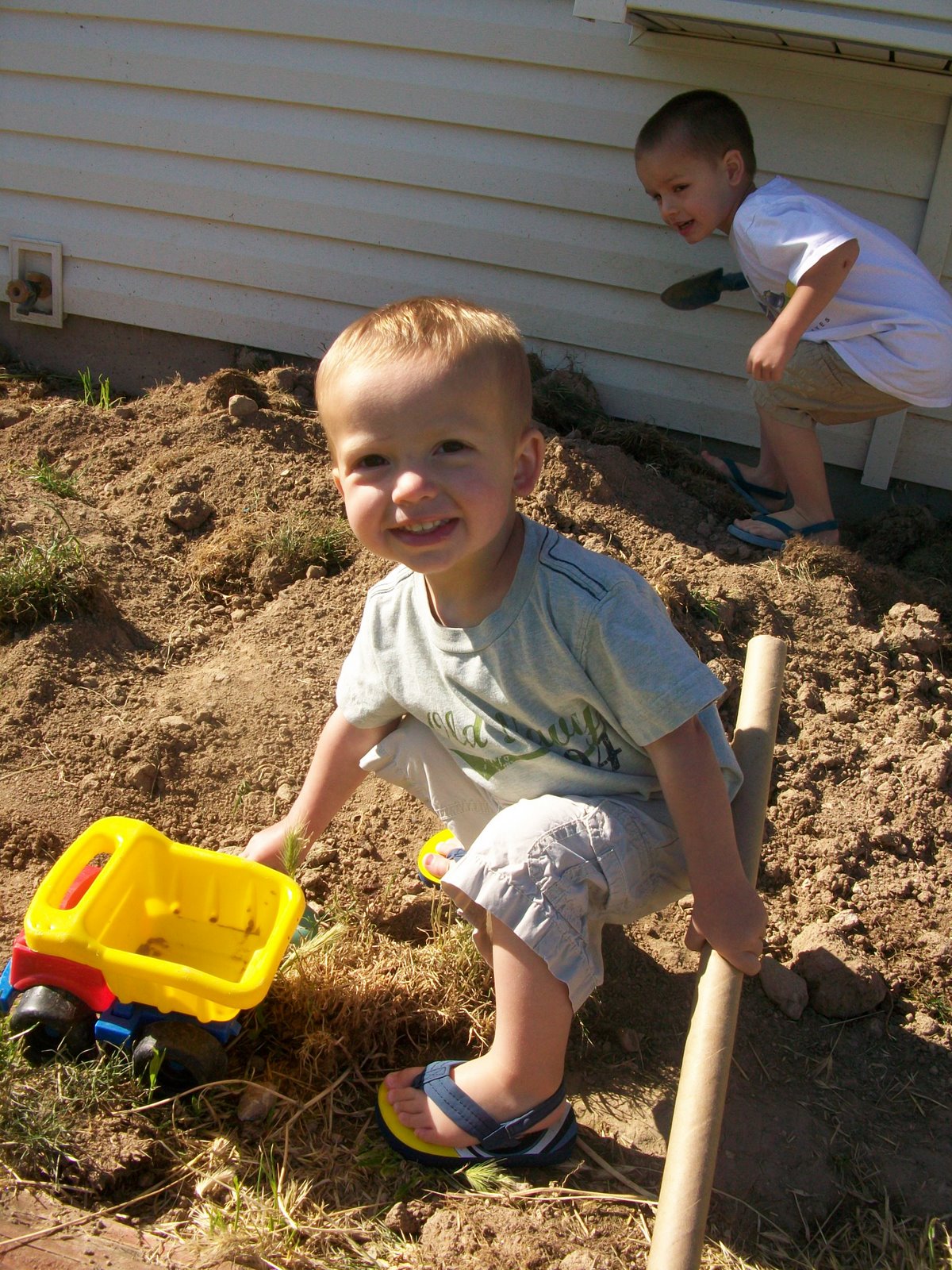 Who needs a sandbox when you have a mound of dirt and sod in a weed-infested flowerbed?