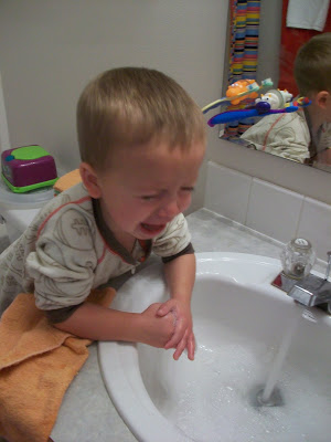 Hilarious. Meanie mom…won't let him wash his hands. 🙂 He looks so cute! Sometimes I laugh at Taylee when she is in the middle of a tantrum. Sometimes….wow. I'm glad you got out your camera!