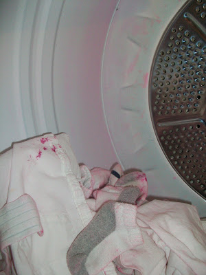2. Yikes! I am so sorry!Andrew got some jumbo crayons for Christmas two years ago and didn't want to share. He stuffed them in his pockets. Luckily I caught them before the load hit the dryer.