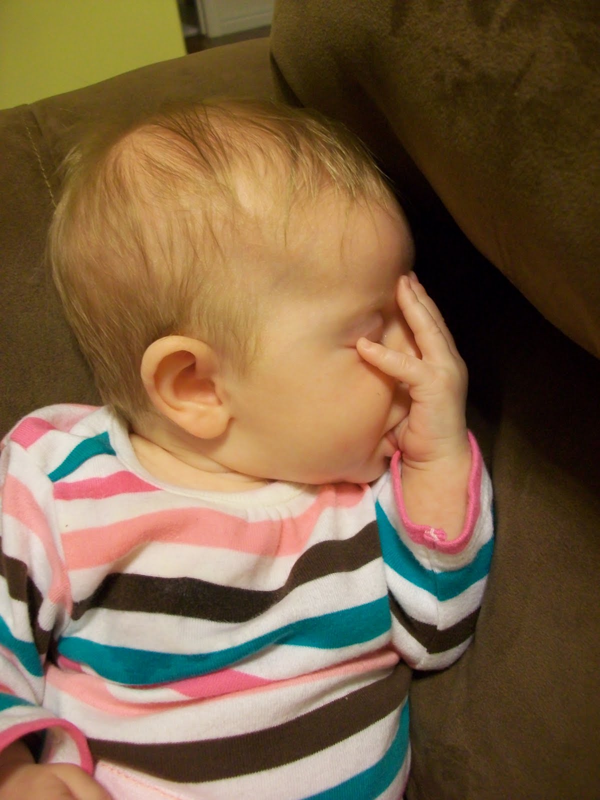 She is adorable! I love pictures of baby thumb suckers. Taylee was a thumb sucker. We were actually able to kick the habit, much easier than I thought, when she turned 3. I truly believe that having a thumb sucker and good sleep for the first couple years is MUCH better than a baby that can't soothe themselves. Hopefully you can get ortho for a discount/free somewhere. Or maybe you'll get lucky and she won't need it at all. I say hooray for thumb sucking!