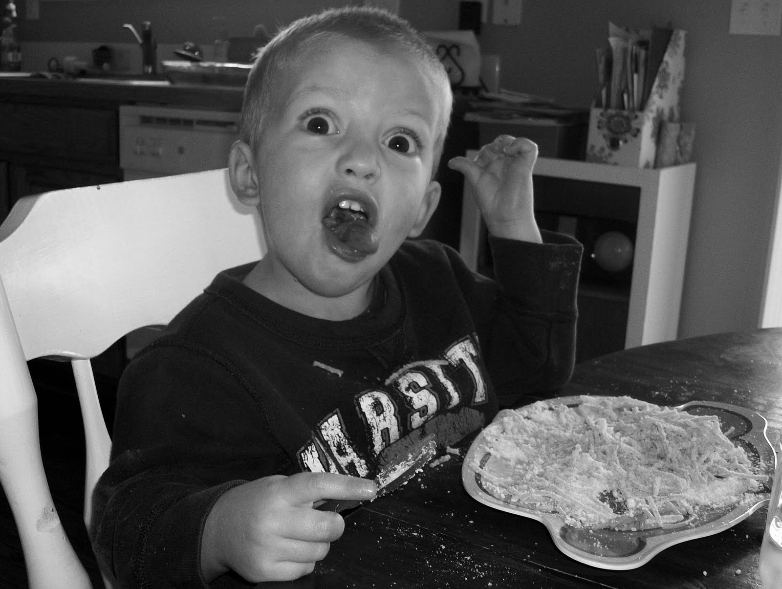 I caved, call me a wimp or a push-over but that is where I draw the line. Richard and I looked at each other, feeling terrible about making our child eat something that was truly making him feel ill. And it wasn’t for lack of hunger. As soon as I set a bowl of applesauce and some sliced cheese in front of him he double fisted the cheese until it was gone and shoveled in the applesauce by the spoonful.
