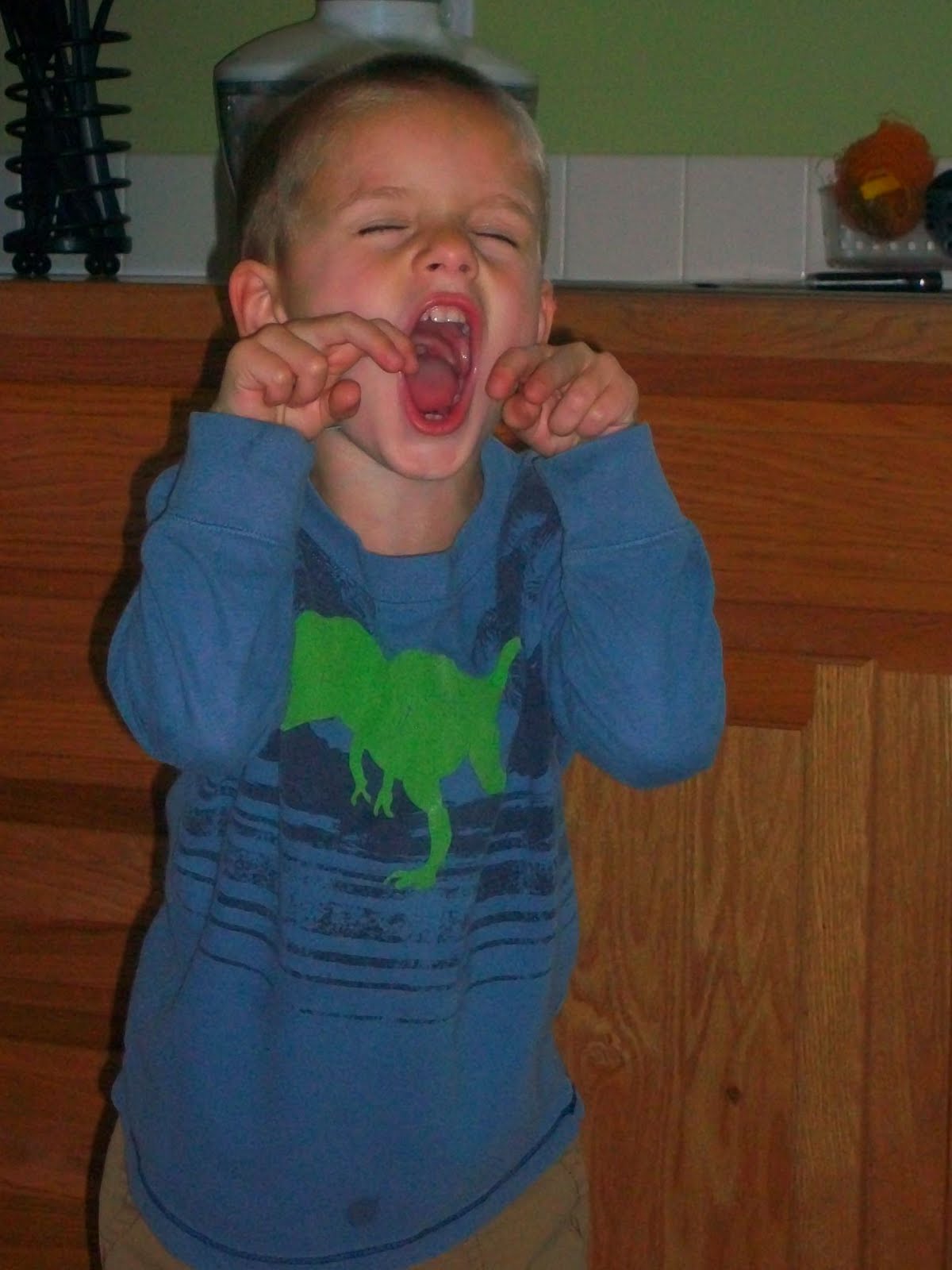 Cameron is moderately obsessed with dinosaurs. He walks around the house slightly hunched over, like an Allosaurus with his hands in a three-finger position and “roaring” until his voice gets hoarse. (Which Miriam, incidentally, thinks is hilarious. Someone opening their mouth and growling as loud as possible right in my face is not amusing, but with babies one can never guess what will delight them.)