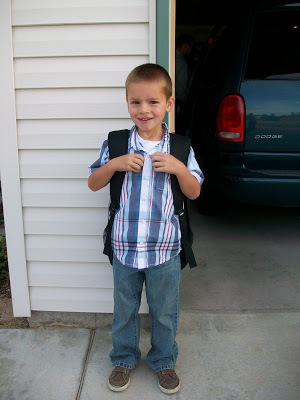 Cameron did just fine though. I needn’t have worried. Even Eli wore a giant grin on the way to Cameron’s school, catching wind of Cameron’s excitement. It was a big day for Eli too, he had his first day of pre-school. I wish I could say that he was as brave as Cameron, but he is younger and his personality is different. Hopefully day #2 will go a little better for the Eli-Pie.