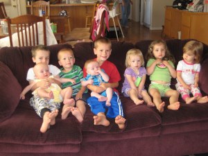 These are the eight grandchildren of my parents, Tony & Cathy. (I won’t put their last name; someone might steal my Dad’s identity and he would never forgive me.) It’s difficult to get eight children age six and under to sit still for a picture. But it’s cute.