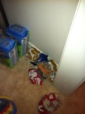 The next morning, of course we were in a hurry to get somewhere and the underwear were nowhere to be found. Typically I would not have much confidence that the clothes made it safely to the drawer, but this time both Eli and I were sure he had put them away. Yet, they were all missing. Not a clean pair of underwear to be found. All of us searched high and low to no avail. Finally we coerced him into wearing some of Cameron’s underwear and we went on our way.