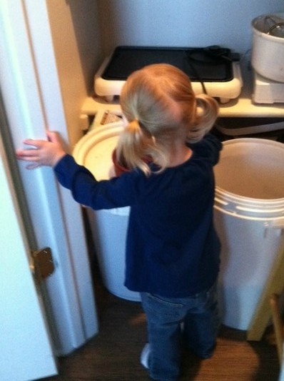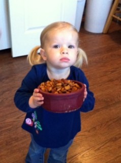 Her new favorite activity is feeding “Dosh”. Of course now that she wants to do this the boys are fighting over whose turn it is.