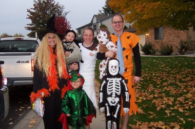 Halloween falls in a bad time of year for Richard, so sometimes he’s around, sometimes he’s busy and sometimes he’s out of town. This year we were lucky to have him around. And I was lucky to get him to dress up! I made the Flinstone costumes last minute with the help of YouTube.