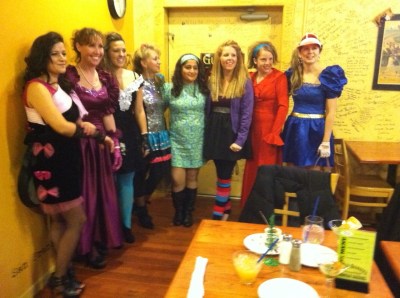 Office Christmas parties have such potential for comedic material- but these pictures are about as funny as I can get. The party was booked at a sports bar this year. (Not just any sports bar, but one featured by Guy Fieri- Rick’s Press Room.) But despite its fame, some members of the staff thought it tacky to have a holiday party at a sports bar, so in the spirit of being tacky we all dressed up. There wasn’t a specific decade chosen as a theme, just something fashionable from any decade other than this one. Michelle took the prize for spending two hours crimping her hair. I guess it could be debated whether or not some of these outfits were ever fashionable.