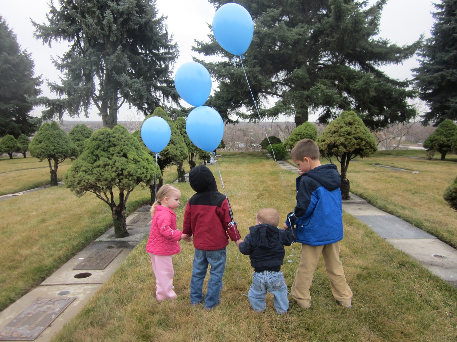I wanted Beckett and his mom (who doesn’t read my blog because we’ve never actually met, so I informed her otherwise- hence the pictures) to know we still think of him, and we live our lives differently around here because of him. So I got a blue balloon for each of the kids and we took them to the cemetary where Beckett’s body rests and sent them heavenward. We watched them for a long time until we could no longer see them. Cameron was the only one who had any idea what was going on, but it was a tender moment for me.