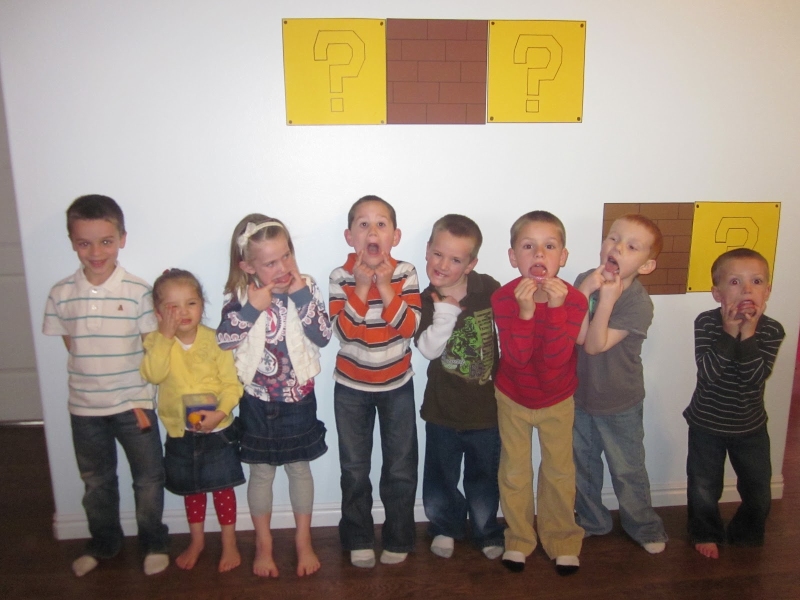 | Eli’s Super Mario birthday party with cousins and friends. |