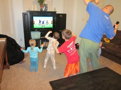 We only have two Wii remotes, but that doesn’t stop the whole gang from participating.  Kids are such good sports that way.
