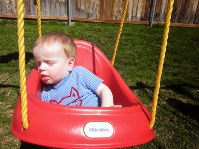 Simon loves the swing. He loves just sitting in it, watching the other kids buzz around him like busy little bees. Once the weather got nice it became the perfect toddler occupation when I needed a break. Sending all the kids outside is a luxury that is not taken for granted.