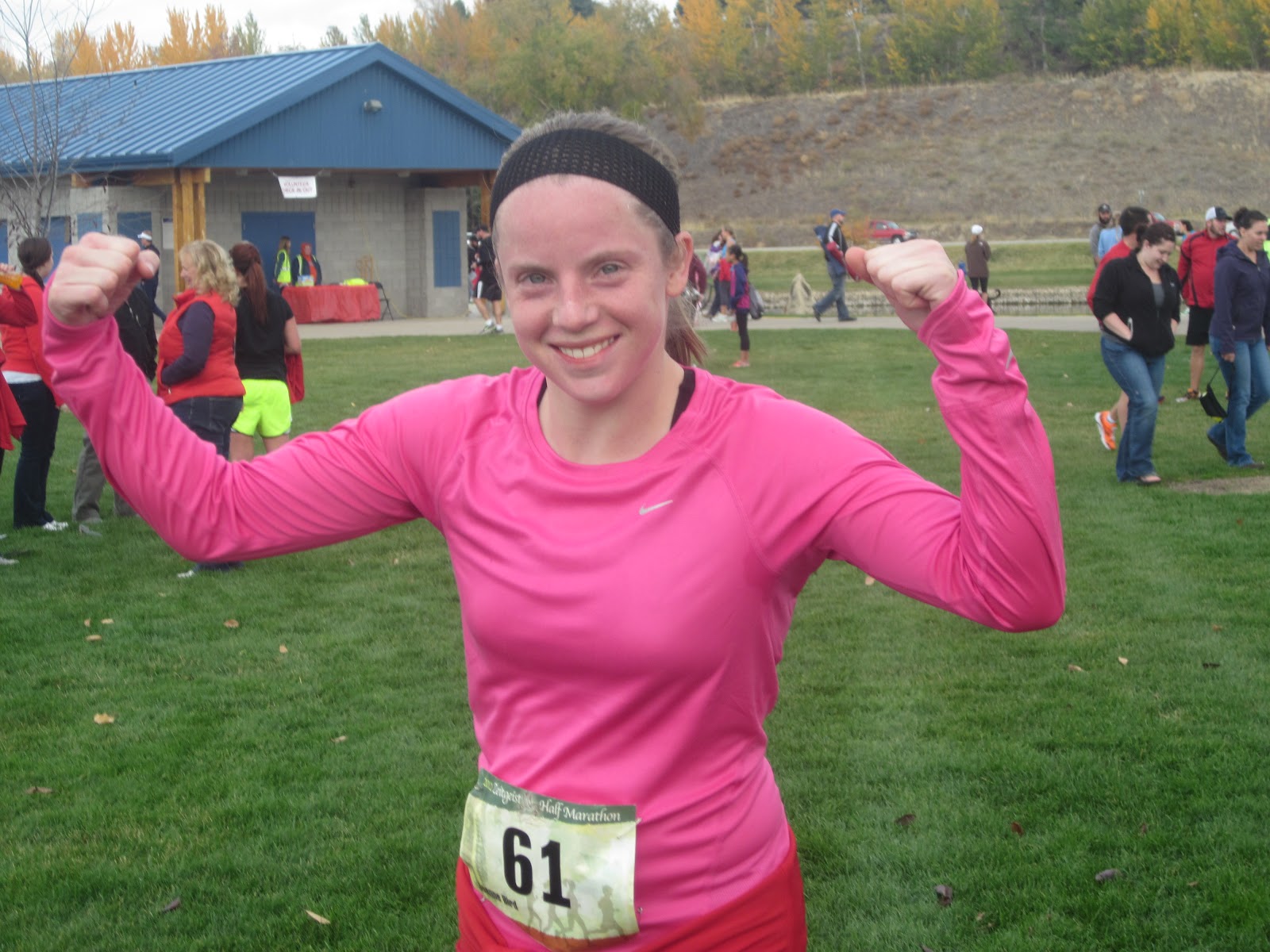 The weather was really cold at first, but fine once I got running. I wish the sun would have peeked out a little more, I love running in the sunshine. It makes me feel like a champion. But all the leaves were changing and it was a really pretty route out to Hidden Springs and back. The people of Hidden Springs came out on their porches and cheered us on. My favorite was a little girl sitting alone on her porch with a sign that said