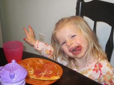 I guess since Simon’s pizza was cheese-less his smile is more genuine. Cameron, Eli and Miriam have cheese oozing out of their pores. I’m not sure what instigated this photo session but the minute I get out the camera and take a picture of one of the kids, the rest have to have their moment to shine. As a side note, because I’m thinking of it, in Miriam’s picture you can see the top of her Tangled microphone. The other day there was no school so I took the kids downtown to have lunch with Richard. Miriam carried her microphone with her everywhere that afternoon. It’s a different demographic downtown, I get the feeling many of those people don’t have much exposure to kids, let alone a family with four of them. We get attention whether we like it or not. But Mim likes it. She performed or posed for everyone who asked about her microphone. The girl is not shy.