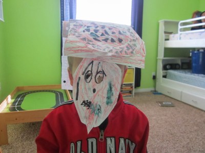 Eli is a project oriented kid, and for several weeks his projects were these homemade Star Wars masks. I really am quite proud of his creativity, but the masks were severely irritating my OCD. I have a zero tolerance for clutter, everything must have it’s place and there was just no good place for these awkward creations. So I took some pictures to immortalize his hours of hard work before the masks went the way of the landfill.