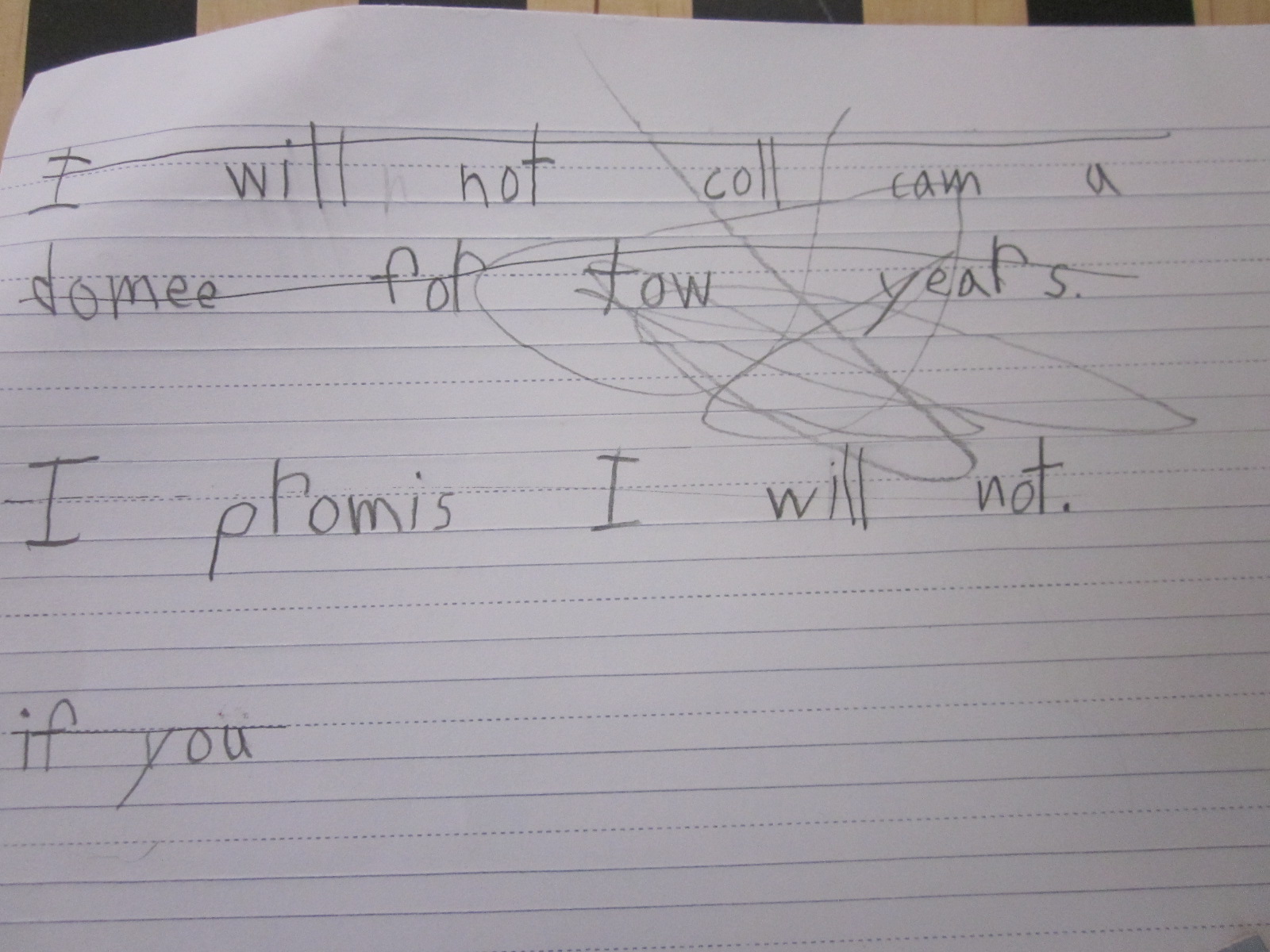 | There have been similar contracts about Eli keeping the room clean while Cameron is at school, and Eli choosing Madden 09 instead of MarioKart when it’s his turn to pick the Wii game. |