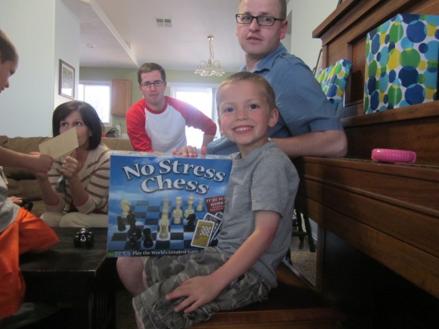 Because speed is not his strength we thought Chess would be just the kind of game for him. For his birthday he also got a Star Wars X-Wing model, a couple books, and some Star Wars legos.