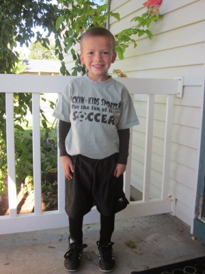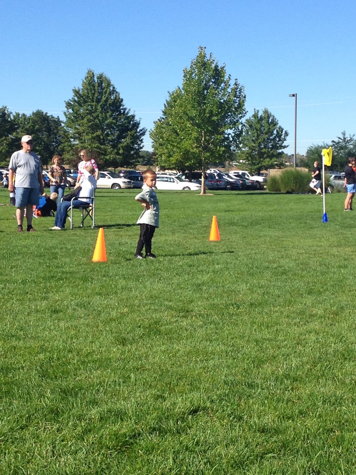 Eli had his first chance at sports this fall. There is a local sports league that is super low-key. It includes a 20-minute practice right before the game, and then a 40 minute game. The practice/games are always on Saturdays and always in the same hour block of time. It was perfect for him. This soccer mom loves low-commitment. Having a bit of a tortoise reputation, along with a slight lazy streak, Richard and I were both pretty shocked about how much effort and energy Eli played with. He took it seriously. Despite the relaxed stance he is taking in this photo- he really did a good job at goalie.