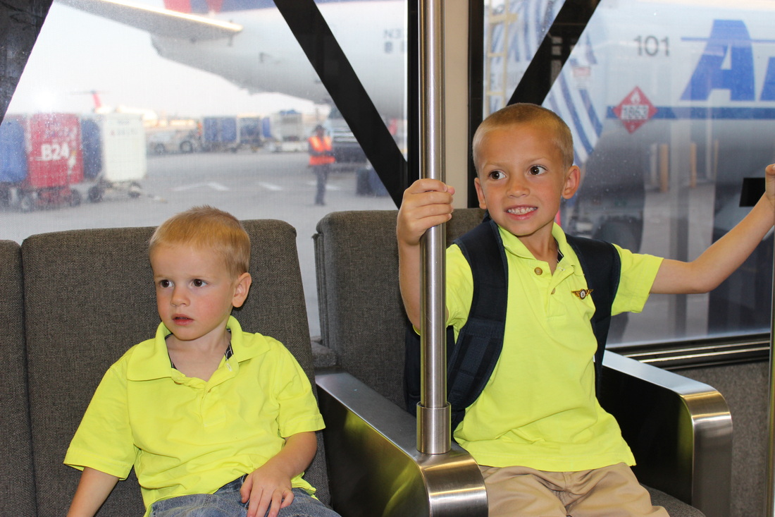 Our first flight was quick and exciting for the kids. But we landed with just enough time to shuttle around the Seattle airport and get to our next gate just in time for boarding. Delta gate checked our carry on bags with no charge which was a huge blessing with all four kids in tow. They also had already switched seat assignments so we could all sit together. The flight from Seattle to NYC went well thanks to in-flight entertainment at each seat. At one point Simon was sleepy and a little restless and he asked if we could just go home. As if riding an airplane was something we were just doing recreationally.