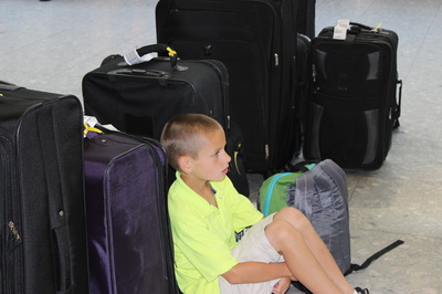 We packed up the last of our stuff, dressed the kids in their matching neon shirts and we made it to the airport two hours before departure. Which was good because four of our six checked bags were too heavy and we had to do a lot of shifting of belongings. We didn’t have to leave anything behind except a few bags of extra bathroom essentials. I would have been really embarrassed by having my personal belongings unpacked and repacked in front of a long line of travelers but I was too stressed to care.