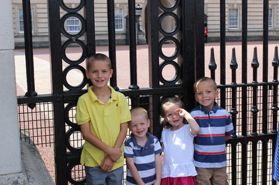 Buckingham Palace guard. Our stop by the palace was a little impromptu so we didn’t know much about it until we came home. They fly a flag when the Queen is living there but we didn’t know to look for it. It has something like 661 rooms, and only 11 are open to the public for tours. Miriam was dying to go inside. Cameron and Eli were really interested in the guards. The buttons and feathers are unique to each country in the UK.