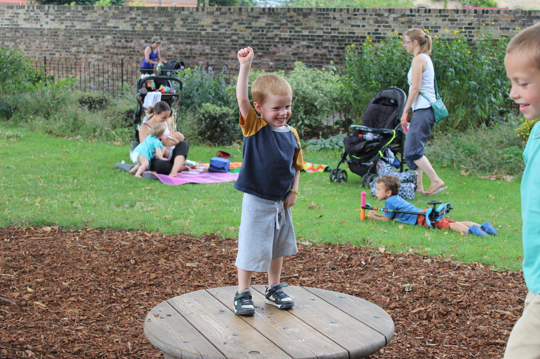 We stopped and ate our cookies and drank our juice at the top of the hill.  Then we stopped a few other places so the kids could play and I could find some shade and attempt to cease the perpetual sweating.  No one told me London would be so hot!