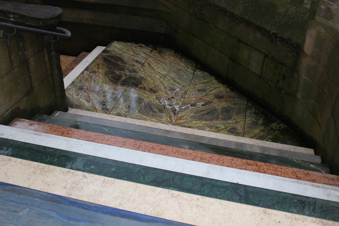 My dad discovered these steps, 104 steps of different types of marble from all over the world. They were so beautiful, never did I enjoy walking up 104 steps so much.