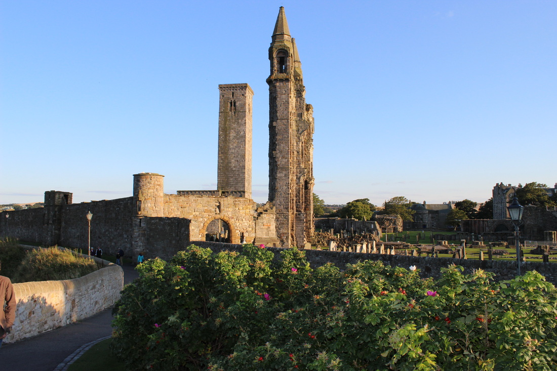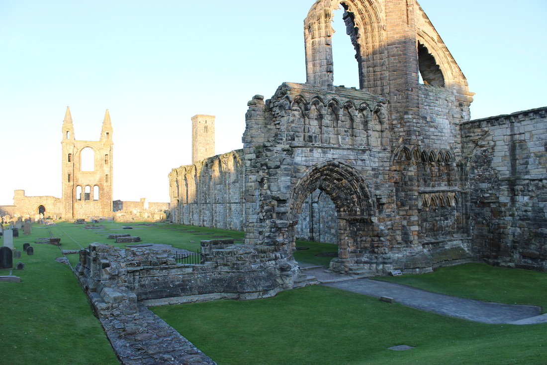 We walked back up to the castle ruins, and looked around a bit but it was closed for the day. We then walked along the coast toward the Cathedral ruins. The Cathedral took 150 years to build, beginning in 1158. It was the largest church in Scotland, and you can tell from the ruins that it was massive. In 1559 during the Scottish Reformation, Catholic mass services were banned and the Cathedral was abandoned and fell to ruin. That was such a sad bit of history, such an impressive structure ignored and neglected.