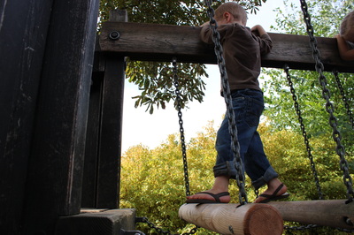 Adventure Parks are a popular trend in London, and probably elsewhere, but they are based on a relatively new idea (in that last decade or so) that kids need opportunities for taking risks during play.  So these parks are meant to be more daring and less safe-guarded.
