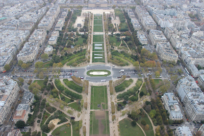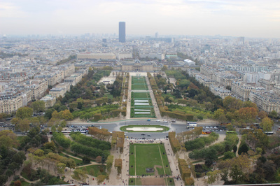 The photo below on the left is the view of the Champ de Mars from the first viewing deck, and then the photo on the right is the view of the Champ de Mars from the top.