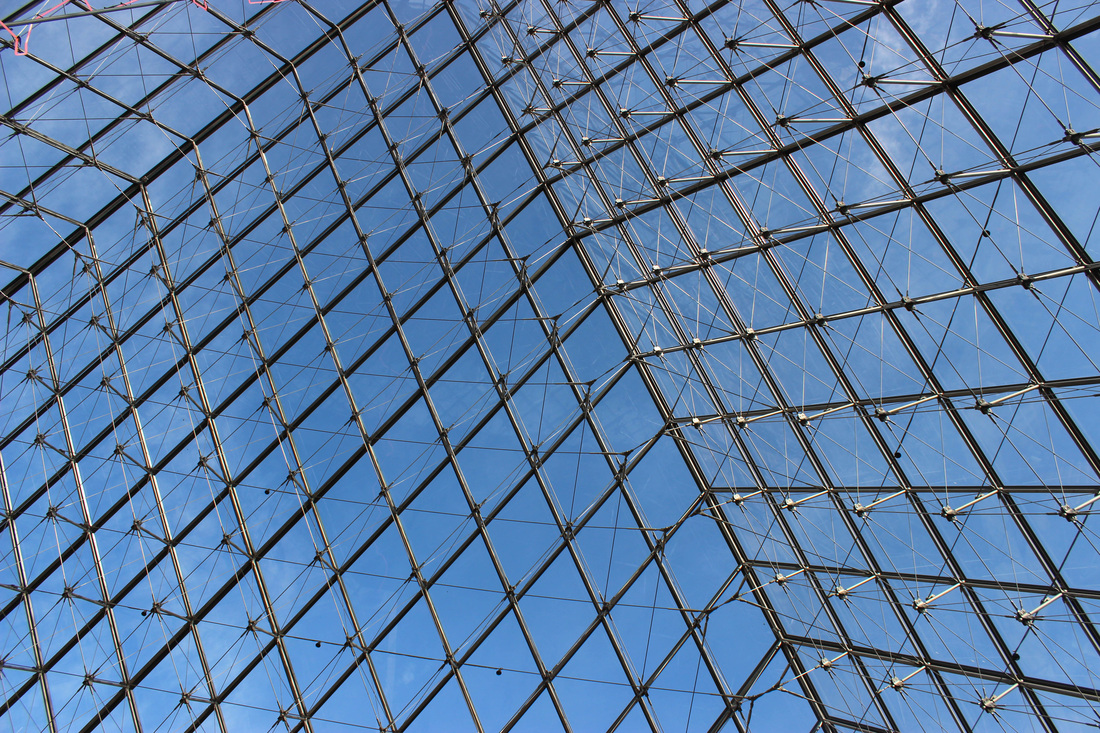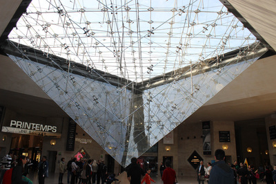 The structure of the buildings is in a U-shape, surrounding this courtyard, with the glass pyramid as the centerpiece. We actually entered the Louvre from the underground because of where we got off the metro. Our first views were of the inverted pyramid in the shopping area beneath the ground.