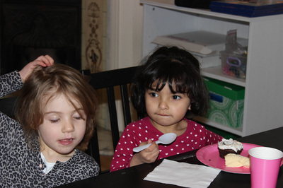 We just invited four girls, and Svana couldn’t come because she was sick. So it was just four of them all together. I forgot to take photos of the painting, but they had a really fun time with it, despite the three of us mothers wanting them to do it our way.