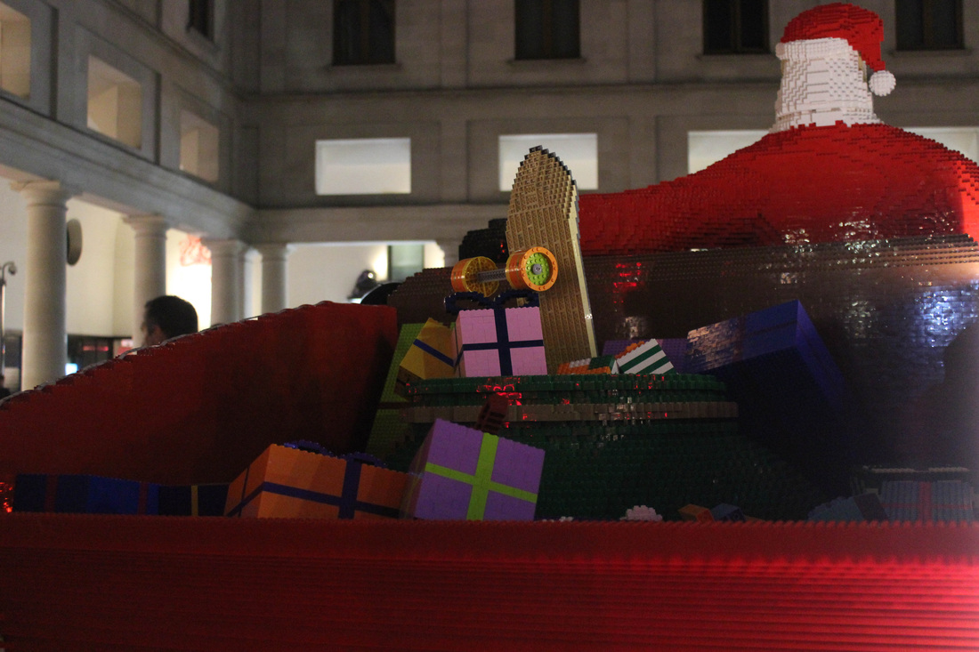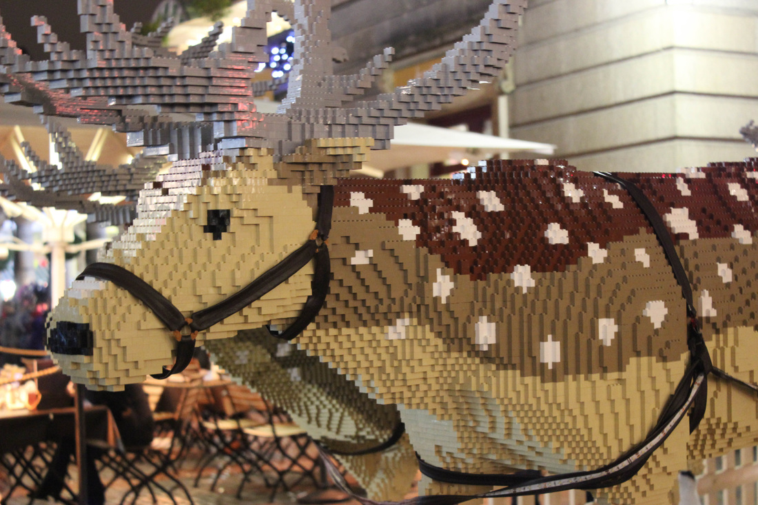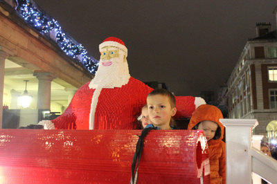 There was a life-size Santa, sleigh and reindeer made entirely of legos.  Eli loved it- but you would never guess by the expression on his face.  He was annoyed because there was a long queue to sit in the sleigh and I insisted that all three kids get in at the same time.