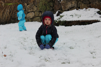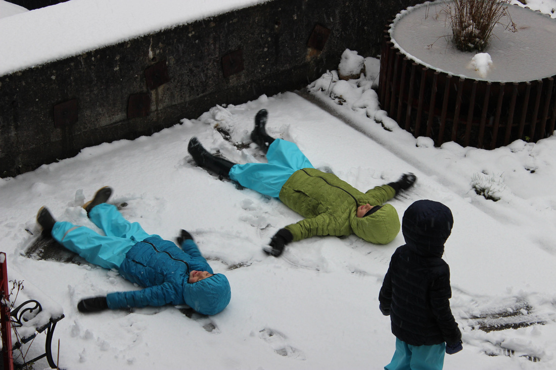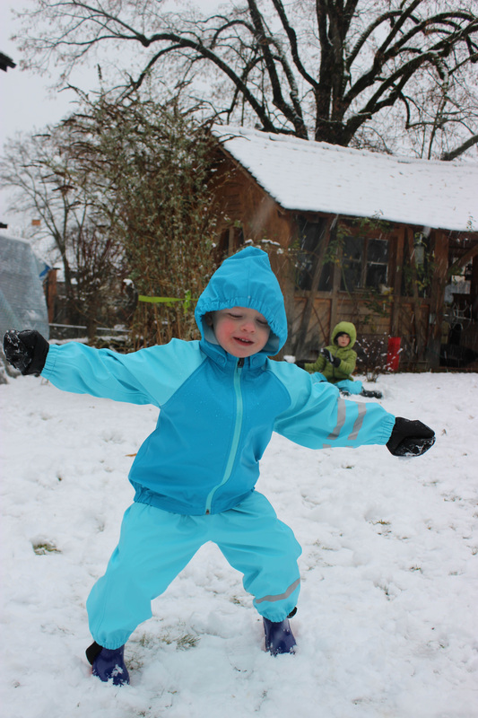 We ate breakfast and watched German cartoons for a bit but the kids were really anxious to go out and play. So we suited up and spent the rest of the morning outside.