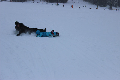 We asked Monica, the woman who owned the chalet where we were staying in, for some suggestions about places to take the kids sledding. (Or sledging. Or tobogganing. Or